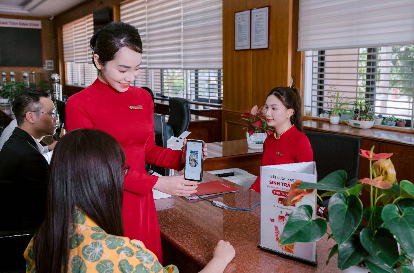| Giao dịch viên hướng dẫn khách hàng cập nhật sinh trắc học |