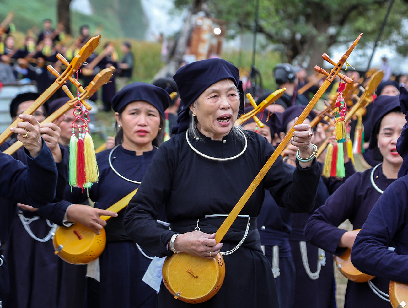 | Màn đồng diễn hát Then đàn Tính có sự tham của nhiều nghệ nhân dân gian, trong đó có Nghệ nhân ưu tú Chu Thị Thà và nghệ nhân ưu tú Đinh Văn Thức (giữa khung hình là nghệ nhân Chu Thị Thà tham gia màn đồng diễn hát Then đàn Tính). |