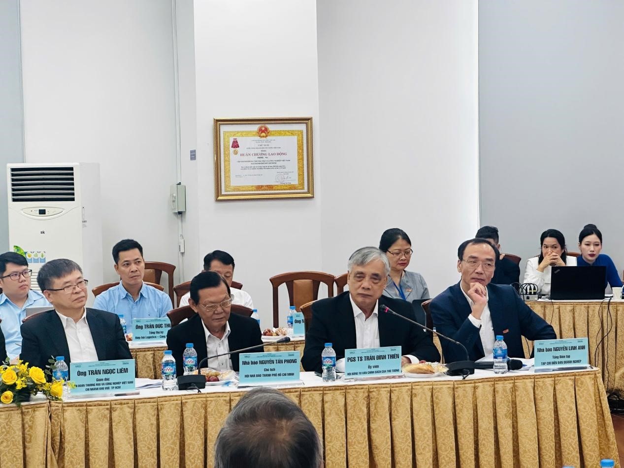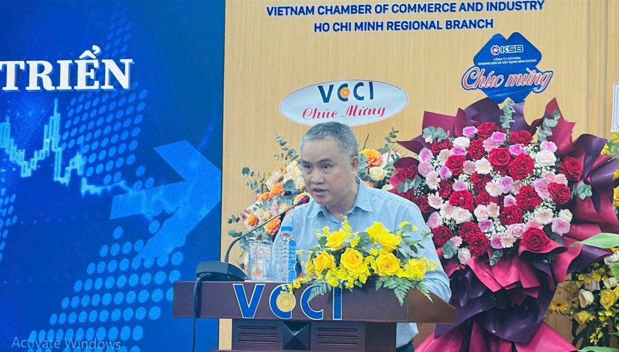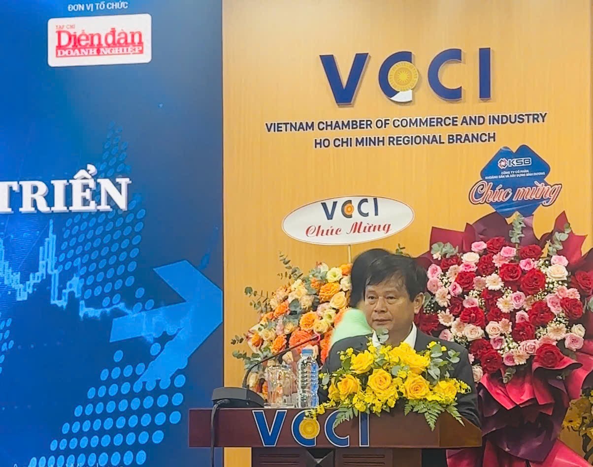 | Ông Võ Tấn Thành, Phó Chủ tịch Liên đoàn Thương mại và Công nghiệp Việt Nam (VCCI) phát biểu tại Tọa đàm |
