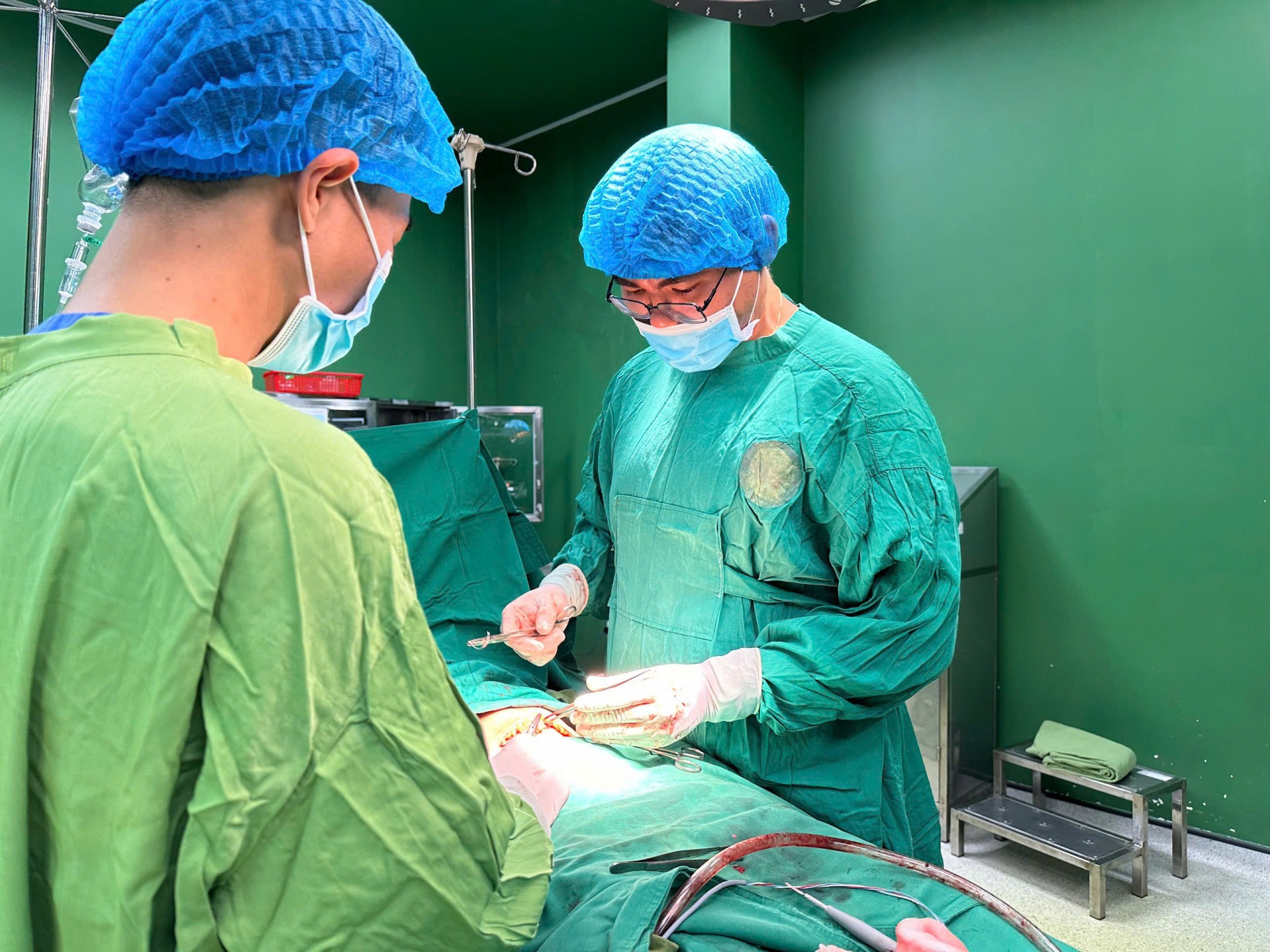 Ngay lập tức, Khoa Sản đã kích hoạt quy trình báo động đỏ liên khoa, huy động toàn bộ đội ngũ từ Sản khoa, Nhi khoa, và Khoa Phẫu thuật - Gây mê hồi sức. Sản phụ nhanh chóng được đưa lên phòng mổ để tiến hành phẩu thuật cấp cứu.