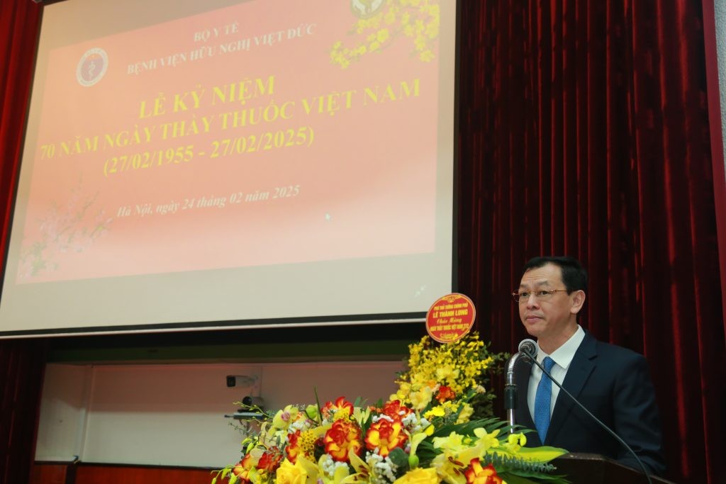 Phát biểu tại buổi lễ, Phó Thủ tướng Lê Thành Long ghi nhận và đánh giá cao những đóng góp của ngành y tế Việt Nam, trong đó Bệnh viện Hữu nghị Việt Đức đã có những bước phát triển vượt bậc, trở thành cơ sở y tế hàng đầu về ngoại khoa, ghép tạng và điều trị chuyên sâu. Phó Thủ tướng nhấn mạnh, chính phủ sẽ tiếp tục quan tâm và đầu tư cho ngành y tế, đặc biệt là chính sách đãi ngộ đối với đội ngũ cán bộ y tế nhằm đảm bảo họ có điều kiện tốt nhất để cống hiến.