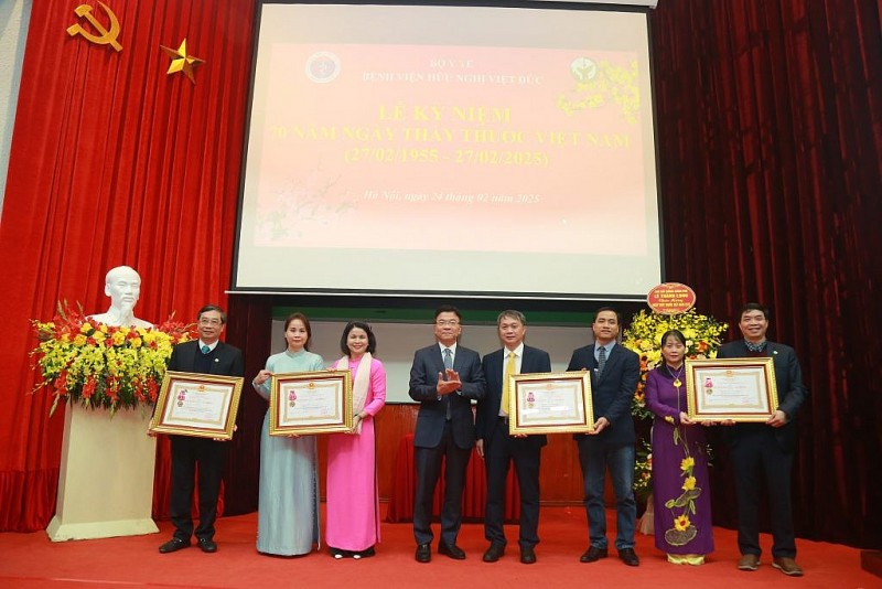 Trong không khí trang trọng của buổi lễ, Phó Thủ tướng Lê Thành Long đã trực tiếp trao tặng danh hiệu “Thầy thuốc Ưu tú” cho 15 cá nhân xuất sắc thuộc Bệnh viện Hữu nghị Việt Đức, đồng thời trao 01 Huân chương Lao động hạng Nhì và 03 Huân chương Lao động hạng Ba cho tập thể và cá nhân có thành tích đặc biệt trong công tác y tế.