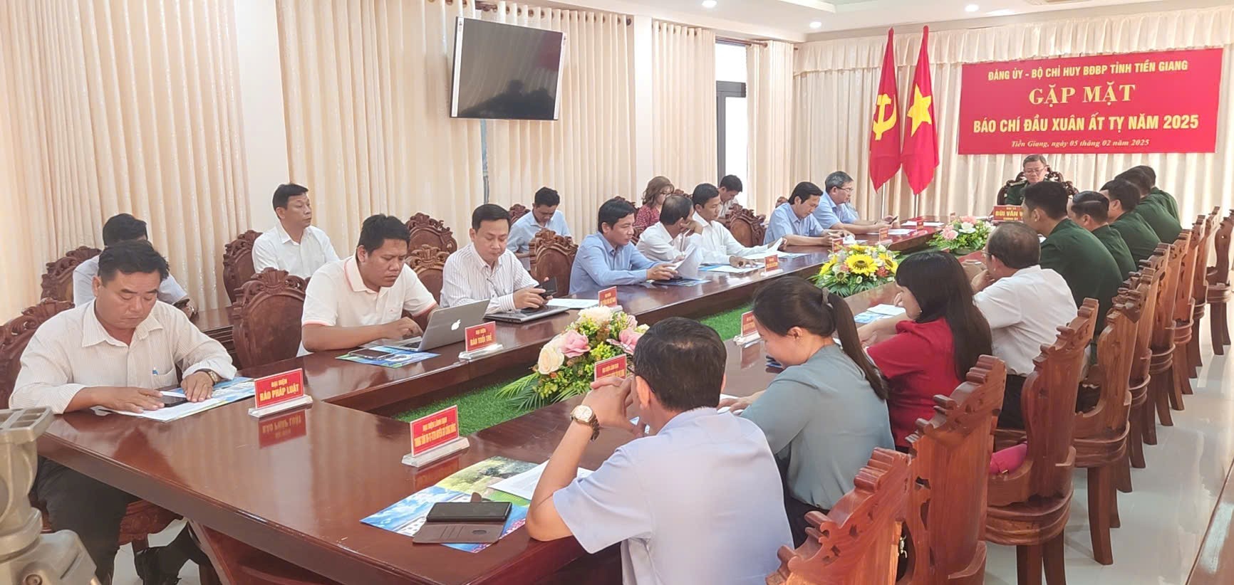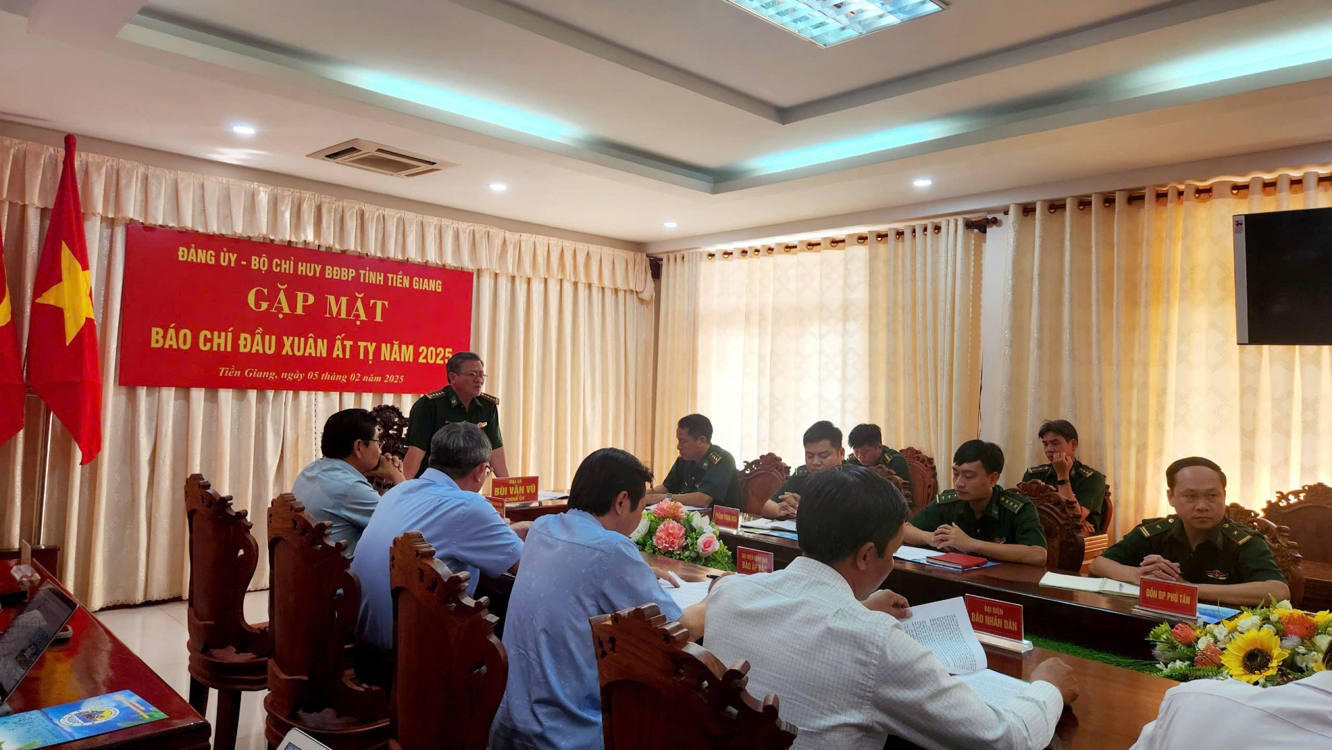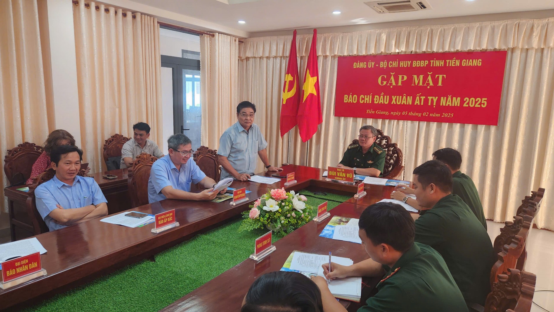 Phát biểu tại buổi gặp mặt, Đại tá Bùi Văn Vũ- Chính ủy Bộ đội Biên phòng tỉnh Tiền Giang đã thông báo tóm tắt những kết quả đạt được năm 2024 và phương hướng hoạt động năm 2025: "Chúng tôi rất ghi nhận sự đóng góp to lớn của lực lượng báo chí, các cổng/trang thông tin điện tử,… đã giúp Bộ đội Biên phòng tỉnh Tiền Giang hoàn thành tốt nhiệm vụ được giao… Sang năm 2025, Bộ đội Biên phòng tỉnh Tiền Giang đẩy mạnh công tác về việc chấp hành quy định phòng, chống khai thác hải sản bất hợp pháp, không báo cáo và không theo quy định (IUU). Qua đó, góp phần nâng cao nhận thức chấp hành các quy định về khai thác hải hản trên biển, không vi phạm IUU…”.