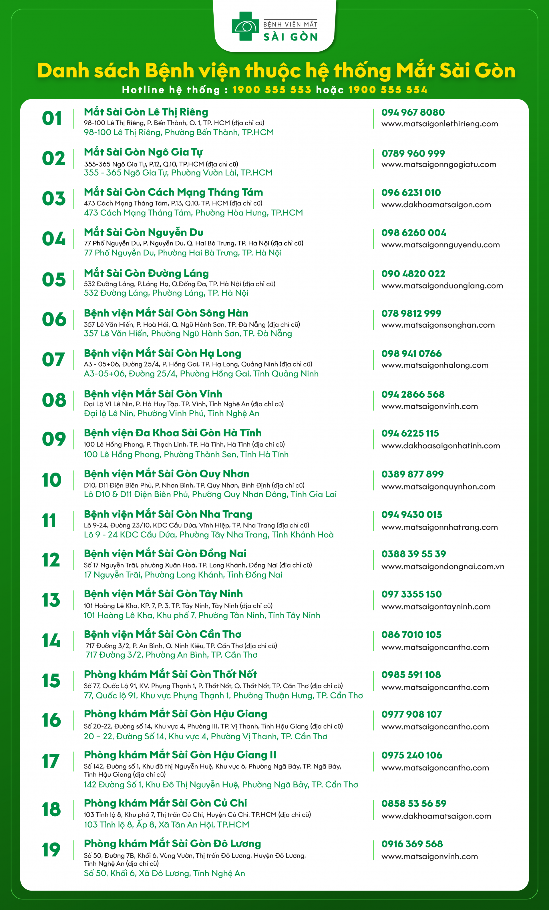 Danh sách Bệnh viện & Phòng khám thuộc Hệ thống Mắt Sài Gòn |