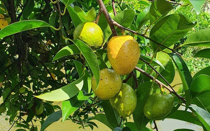 Trái hình như quả tim. Trái non màu xanh, khi chín chuyển màu vàng. Bên trong quả gồm nhiều hạt xếp lớp như các hạt của trái Na. Thịt quả màu trắng hoặc hơi ngả vàng. Ăn có vị chua ngọt và hơi chát nhẹ và có mùi thơm thoang thoảng đặc trưng.
