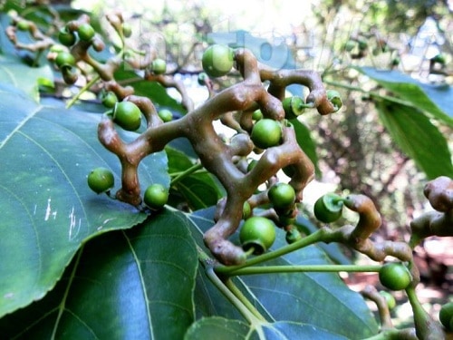 Quả cây có hình cầu màu xanh, kích thước tương đối nhỏ (đường kính khoảng 0,5cm). Quả khi chín có màu nâu, cuống to ngắn và có kích thước gần bằng quả.