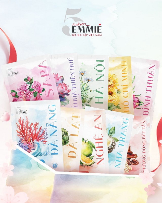 Với 9 địa danh nổi tiếng của Việt Nam, từ Sa Pa, Hà Nội, Nghệ An, Huế, Đà Nẵng, Nha Trang cho đến Đà Lạt, Bình Thuận, TP Hồ Chí Minh được đặt tên cho từng loại mặt nạ, cùng với đó là 11 thành phần có nguyên liệu thô đến từ Việt Nam là Hoa Hồng, Cúc Họa Mi, Bưởi Hồng, Hoa Sen, Nước Biển Sâu, Tổ Yến, Atiso, Thanh Long, Diếp Cá Và Nấm Linh Chi, Hạt Ý Dĩ. Đây là cách mà Emmié by Happy Skin không chỉ mang lại trải nghiệm chăm sóc da độc đáo mà còn kết nối người dùng với “rừng vàng biển bạc” của quê hương.