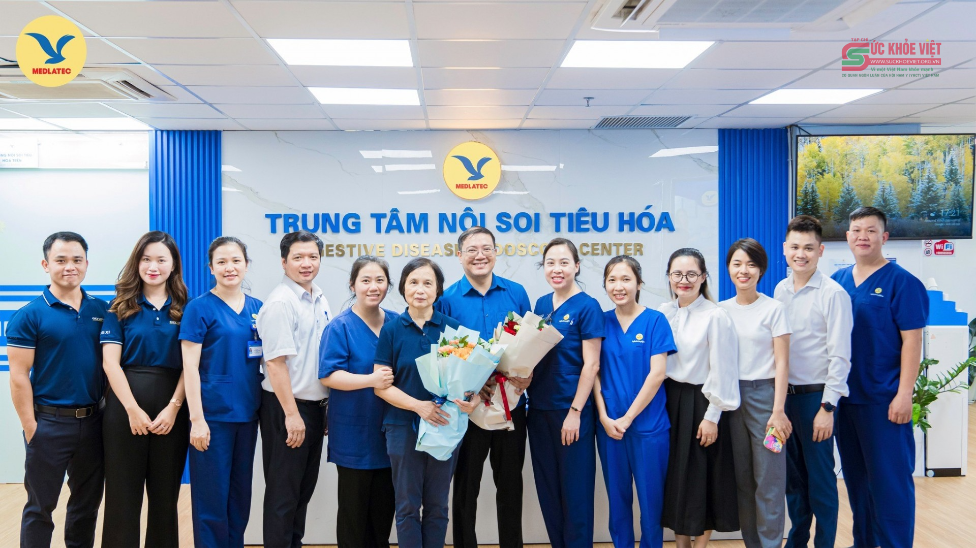 | PGS. Vân Hồng chụp hình cùng các đồng nghiệp tại Trung tâm Nội soi Tiêu hóa, Hệ thống Y tế MEDLATEC |