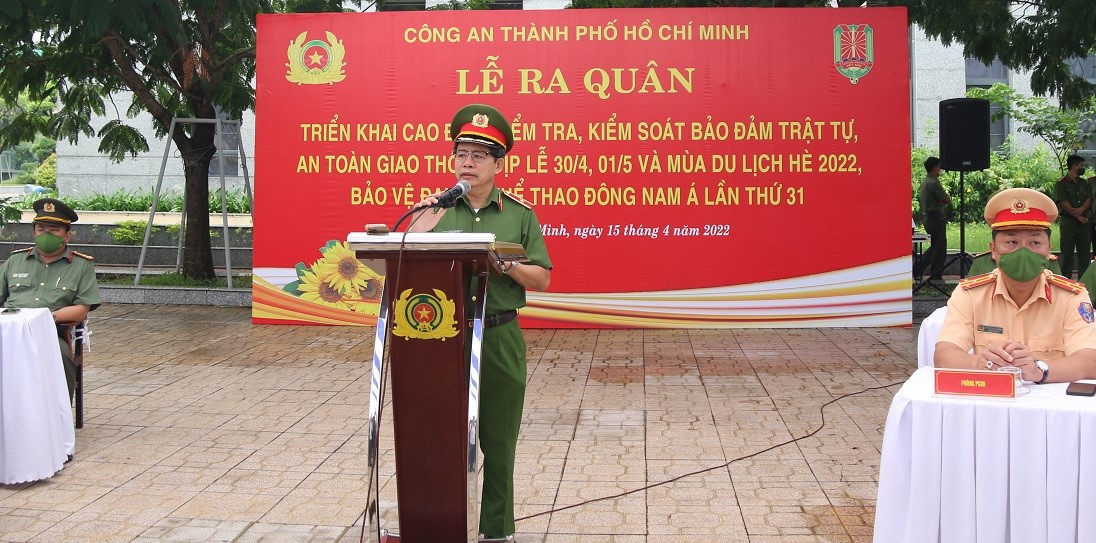 Sáng ngày 15/4/2022, tại trụ sở Công an TP. Hồ Chí Minh, Công an Thành phố đã tổ chức Lễ ra quân triển khai đợt cao điểm kiểm tra, kiểm soát đảm bảo trật tự, an toàn giao thông dịp Lễ 30/4, 1/5 và mùa du lịch hè 2022, bảo vệ Đại hội thể thao Đông Nam Á lần thứ 31. Buổi Lễ ra quân do Đồng chí Thiếu tướng Trần Đức Tài – Phó Giám đốc Công an Thành phố chủ trì.