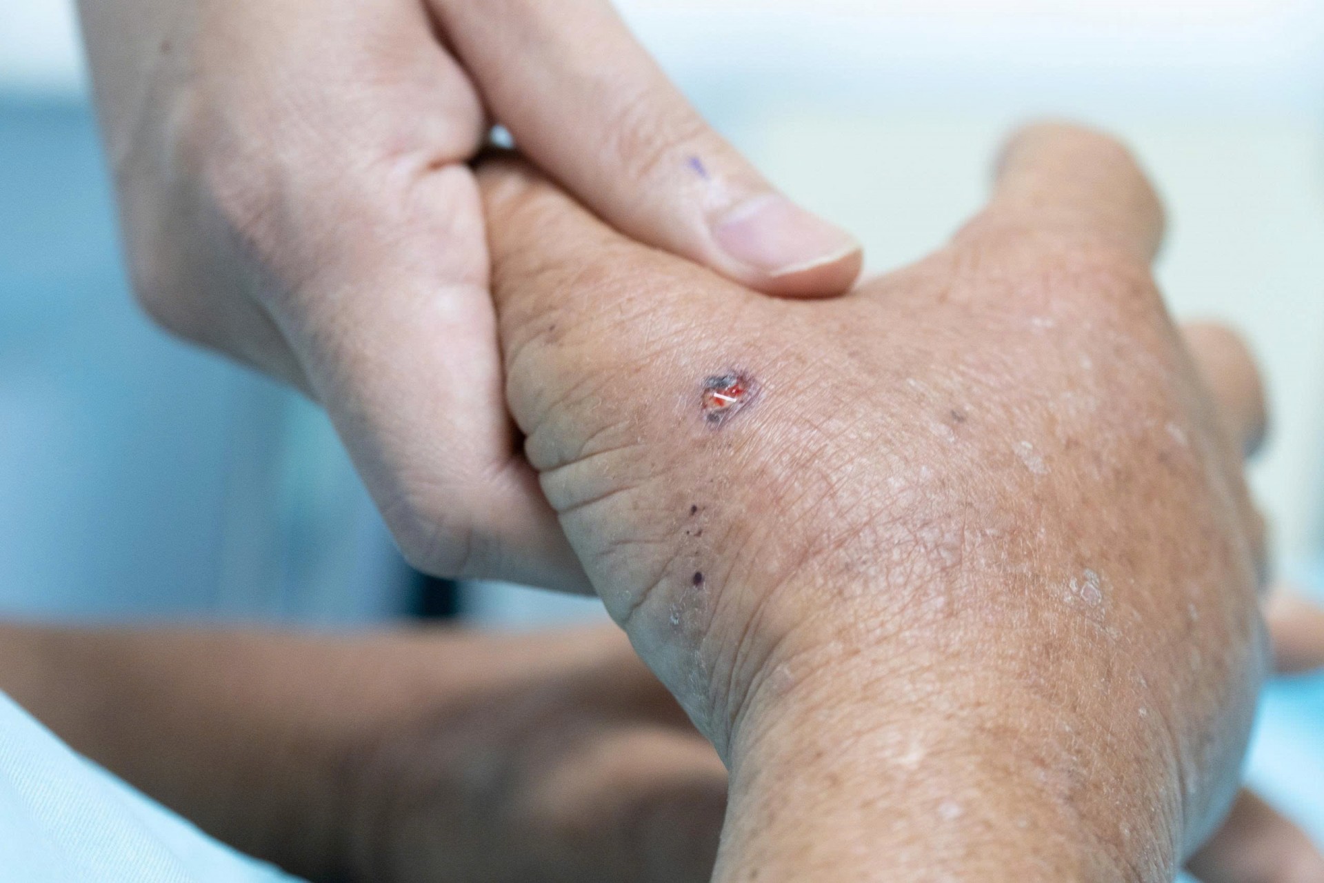 | Một trong những vết thương trên tay ông D. do ong vò vẽ đốt. |