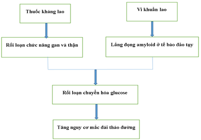 Bệnh lao phổi làm suy yếu chức năng tế bào đảo tụy bằng cách gây ra amyloidosis tế bào đảo tụy và các thuốc điều trị lao làm rối loạn sự cân bằng glucose trong máu bằng cách ảnh hưởng đến chức năng gan và thận ở bệnh nhân mắc PTB, từ đó làm tăng nguy cơ phát triển bệnh đái tháo đường ở bệnh nhân mắc PTB.