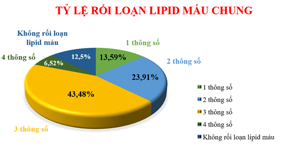 Thành phần lipid có tỷ lệ rối loạn cao nhất là tăng LDL-c (76,09%), kế đến là tăng TC (61,41%), tăng TG (58,15%) và thấp nhất là giảm HDL-c (22,28%).
