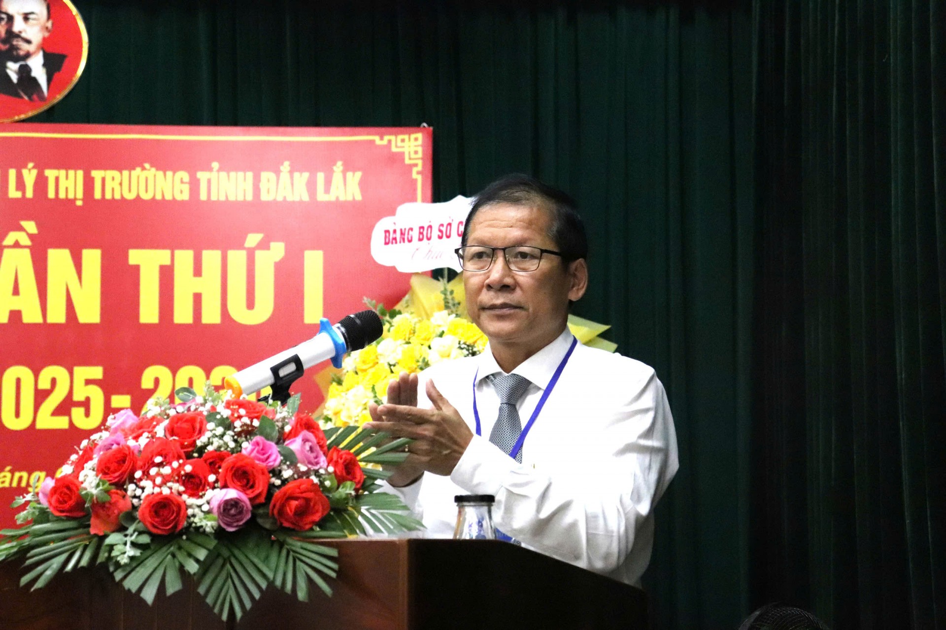 Phát biểu chỉ đạo tại Đại hội, đồng chí Nguyễn Văn Nhiệm - Đảng ủy viên, Phó Giám đốc Sở Công Thương ghi nhận, biểu dương và đánh giá cao những kết quả mà Đảng bộ Cục Quản lý thị trường tỉnh Đắk Lắk đã đạt được trong nhiệm kỳ 2020 - 2025. Với vai trò là Đảng bộ cấp trên, Đảng bộ Sở Công Thương mong muốn trong thời gian tới, Đảng bộ bộ phận Chi cục Quản lý thị trường sẽ tập trung đổi mới hoạt động chỉ đạo, điều hành, trong đó tập trung vào bốn nội dung: Một là, tiếp tục khẳng định vai trò trung tâm của Đảng bộ trong lãnh đạo toàn diện nhiệm vụ chính trị và công tác chuyên môn. Hai là, tăng cường năng lực quản lý thị trường trong bối cảnh mới; đẩy mạnh ứng dụng công nghệ thông tin trong kiểm tra, kiểm soát thị trường, quyết tâm không để hình thành điểm nóng về buôn lậu, gian lận thương mại và hàng giả trên địa bàn. Ba là, xây dựng đội ngũ công chức Quản lý thị trường chuyên nghiệp, trách nhiệm, chuẩn mực, đáp ứng yêu cầu nhiệm vụ trong tình hình mới. Bốn là, sẵn sàng thích ứng với mô hình tổ chức mới khi thực hiện việc sáp nhập giữa Chi cục Quản lý thị trường tỉnh Đắk Lắk và Chi cục Quản lý thị trường tỉnh Phú Yên. Đồng chí tin tưởng rằng, Đảng bộ bộ phận Chi cục Quản lý thị trường nhiệm kỳ 2025 - 2030 sẽ đổi mới, sáng tạo, đoàn kết, đồng lòng cùng cả hệ thống chính trị sẵn sàng tâm thế bước vào kỷ nguyên mới - kỷ nguyên vươn mình của dân tộc.