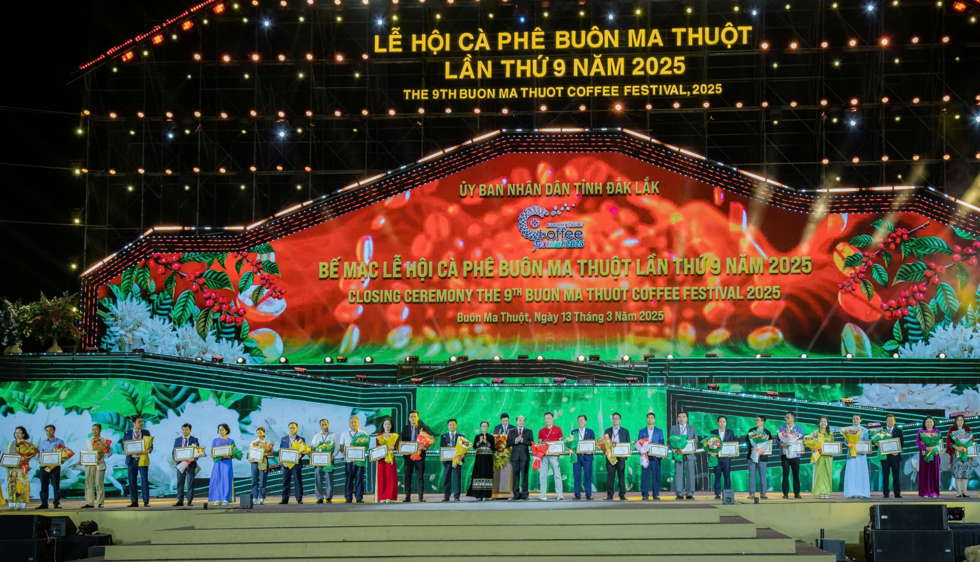 Sau 5 ngày diễn ra sôi nổi (từ ngày 9/3 đến ngày 13/3) với nhiều hoạt động đặc sắc và mang đậm bản sắc văn hóa truyền thống, Lễ hội Cà phê Buôn Ma Thuột lần thứ 9 năm 2025 đã kết thúc, chính thức khép lại một kỳ lễ hội ấn tượng, an toàn, thành công, để lại nhiều ấn tượng trong lòng người dân, du khách trong và ngoài nước.