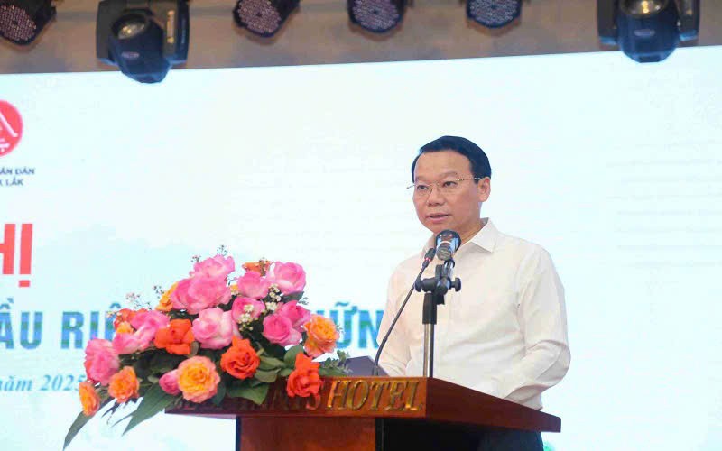 | Ông Nguyễn Thiên Văn - Quyền Chủ tịch UBND tỉnh Đắk Lắk phát biểu tại hội nghị |
