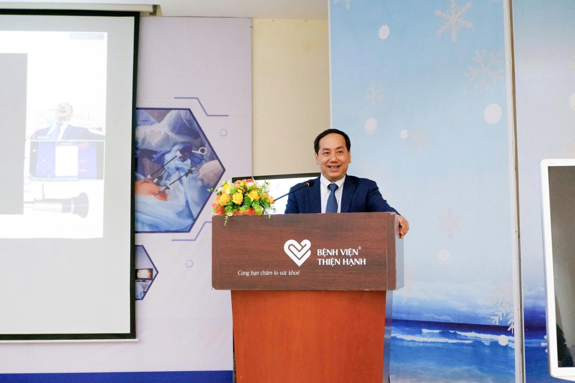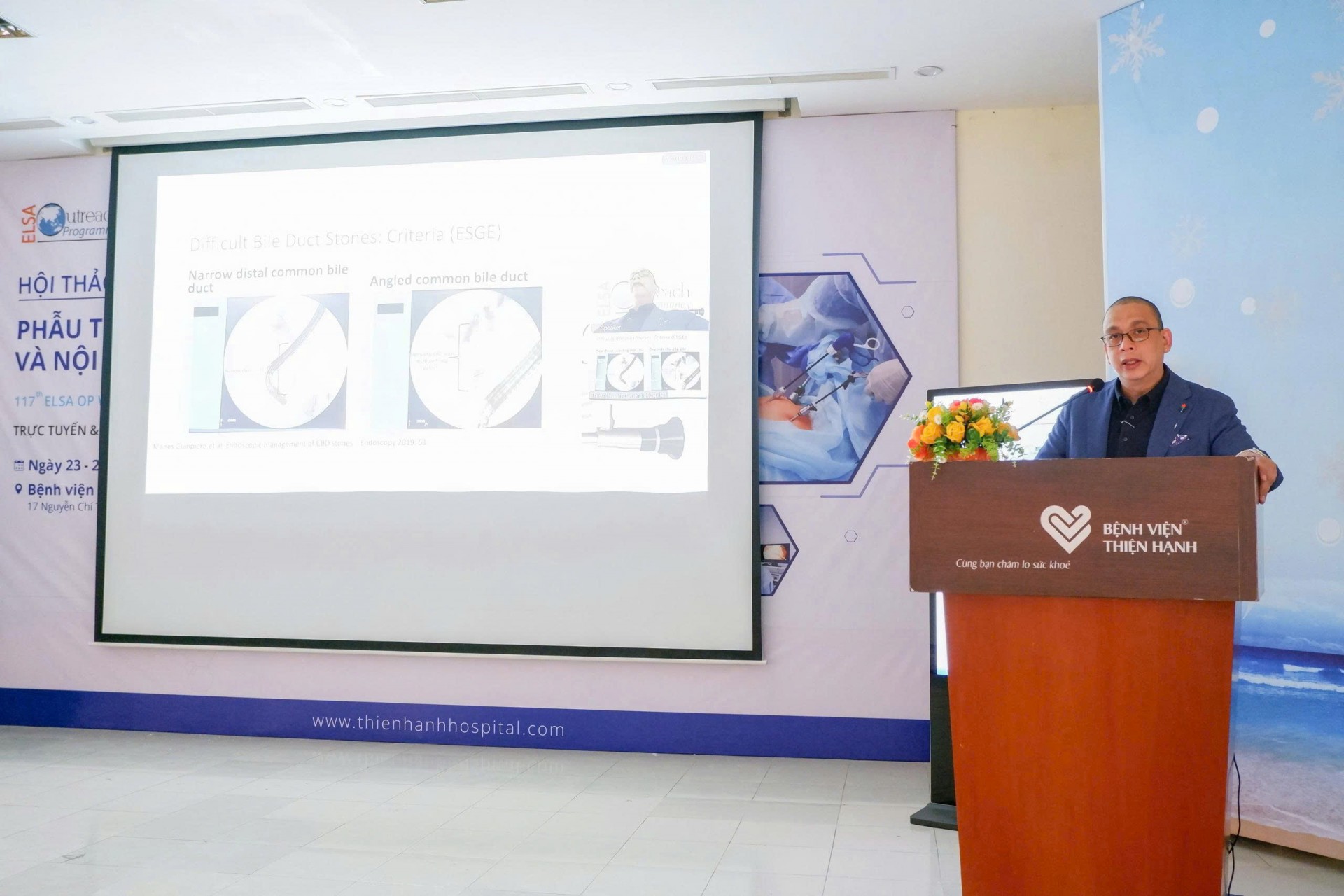 ThS.BS Phạm Phú Cường - Phó Giám đốc, Trưởng khoa Ngoại Tổng hợp, Bệnh viện đa khoa Thiện Hạnh phát biểu khai mạc, khẳng định vai trò của sự kiện trong việc giúp nâng cao trình độ chuyên môn tại địa phương. Bác sĩ nhấn mạnh hiệu quả điều trị, rút ngắn thời gian hồi phục mà các kỹ thuật như nội soi điều trị thoát vị và ERCP (Nội soi mật tụy ngược dòng) mang lại, đồng thời xem đây là cơ hội quan trọng để mở rộng hợp tác chuyên môn giữa các quốc gia trong khu vực.