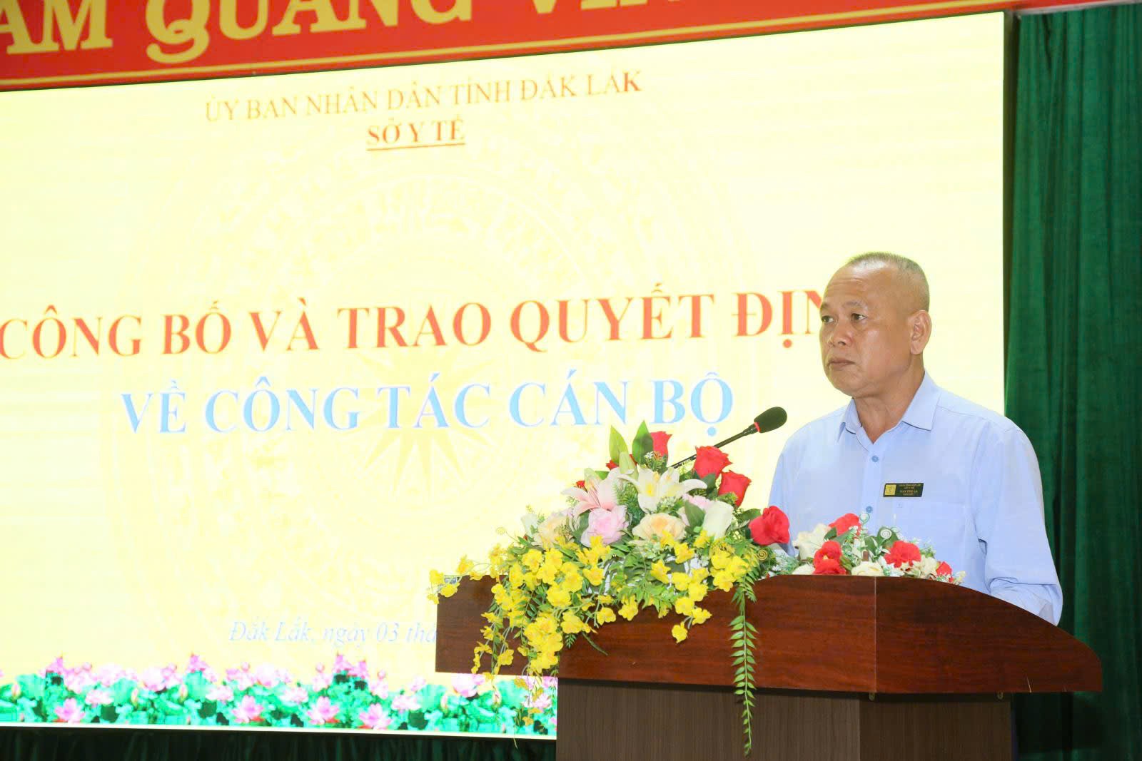 | Sở Y tế tỉnh Đắk Lắk công bố các quyết định tiếp nhận và bổ nhiệm cho các đồng chí giữ chức vụ lãnh đạo, quản lý. |