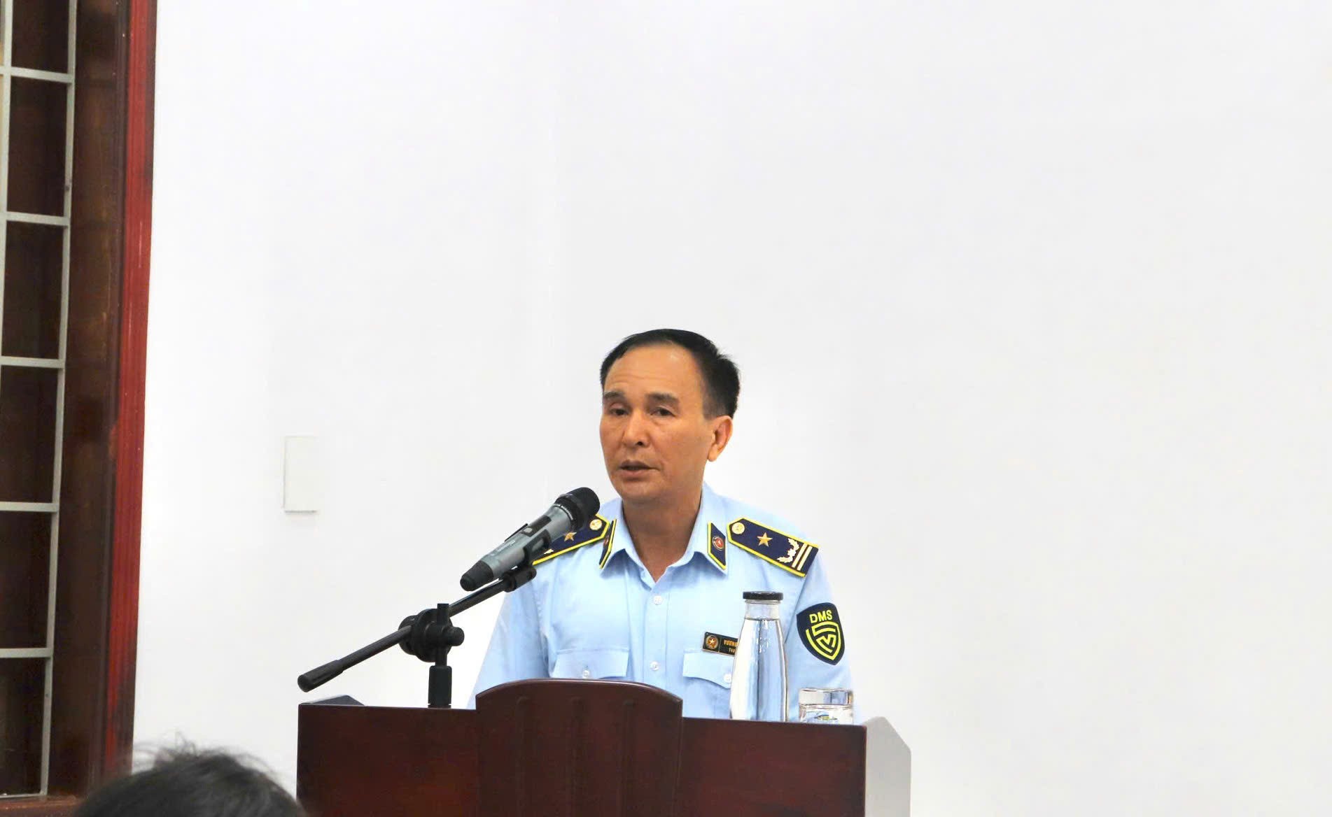| Đồng chí Vương Minh Sơn - Chi cục trưởng Chi cục Quản lý thị trường tỉnh Đắk Lắk phát biểu nhận nhiệm vụ |