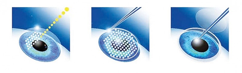 - Thứ tự thực hiện của máy FEMTO LDV Z8 lần lượt sẽ là tạo đường rạch hình cung trên giác mạc, phân mảnh TTT, xé bao trước, cuối cùng là tạo đường mổ phaco chính 2 mặt phẳng kích thước 2.2mm và 1 đường phụ 1 mặt phẳng 1mm.