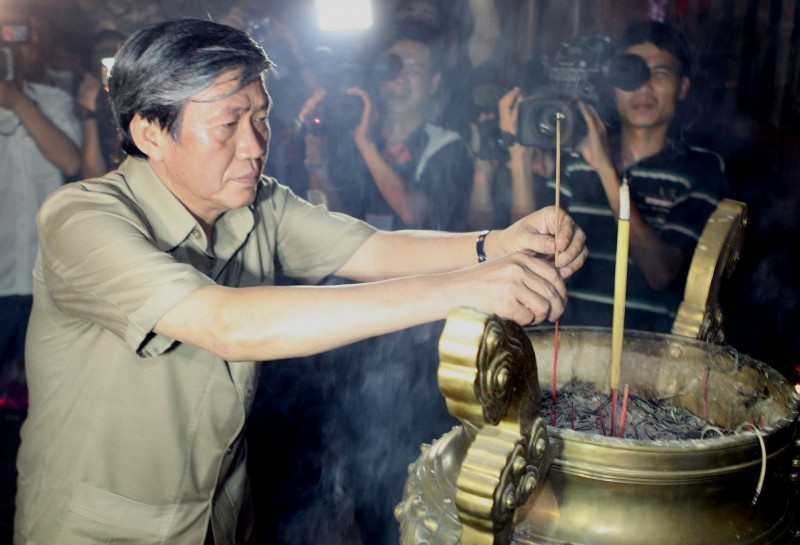 | Đồng chí Đinh Thế Huynh dâng hương tri ân các anh hùng liệt sĩ tại nhà hành lễ bến thả hoa bờ Nam sông Thạch Hãn. Ảnh: Hồ Cầu-TTXVN |