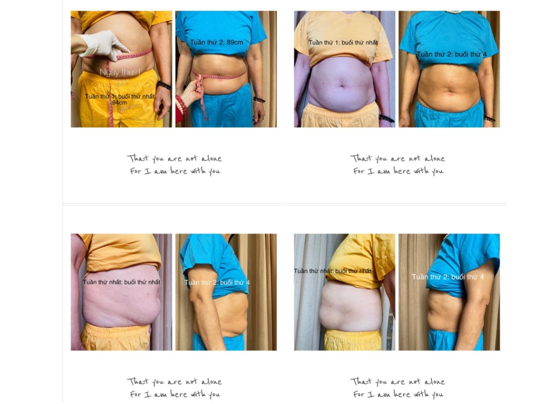 Kết hợp xoa bóp rượu gừng, dầu dừa và uống tỏi dấm mật ong chị Huyền Hoàng đã giúp mẹ đẻ sau 2 tuần sử dụng theo công thức 3 lần/1 tuần, không nhiều hơn, có kết hợp uống tỏi dấm mật ong 5 ngày/1 tuần đã giảm vòng bụng rõ rệt từ 94cm xuống còn 89cm và được bà phản hồi thấy ngon miệng lắm, đặc biệt bụng không bị đầy hơi như mọi khi, thấy nhẹ nhàng, mềm mại và thon gọn hơn.