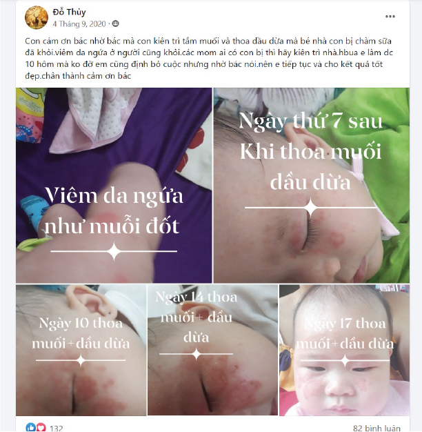 Chị Đỗ Thủy được hướng dẫn tắm muối và thoa dầu dừa cho em bé bị chàm sữa, đã có lúc chị nản và định dừng lại nhưng nhờ sự động viên của bác Lão nhà quê mà chị đã tiếp tục kiên trì và kết quả tốt đẹp sau 17 ngày.