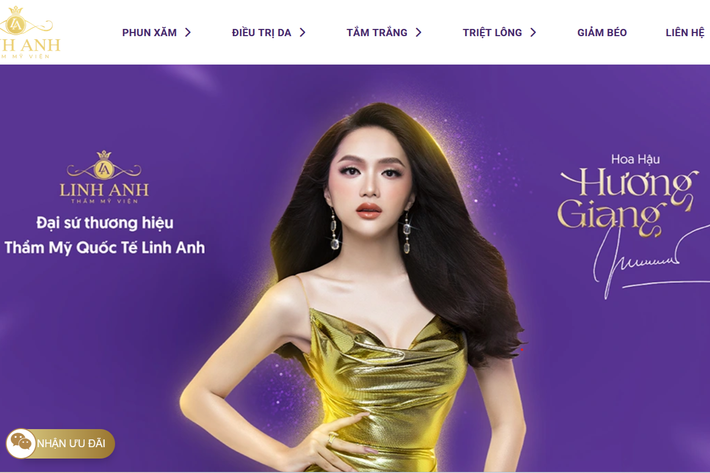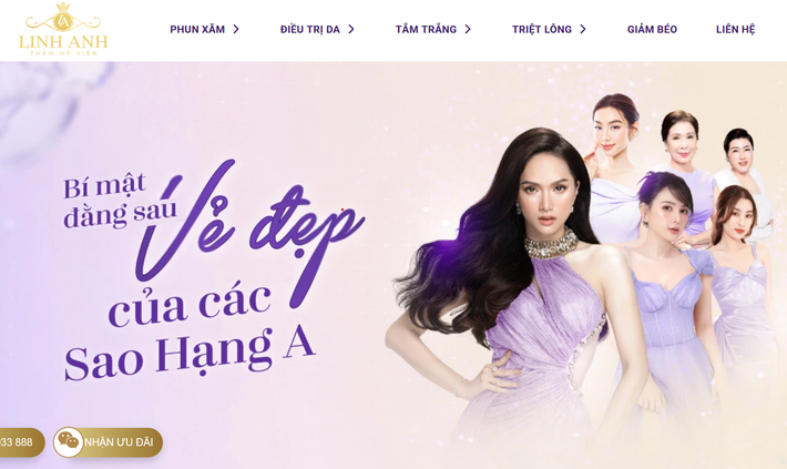 | Website quảng cáo về Thẩm mỹ quốc tế Linh Anh. Ảnh chụp màn hình. |