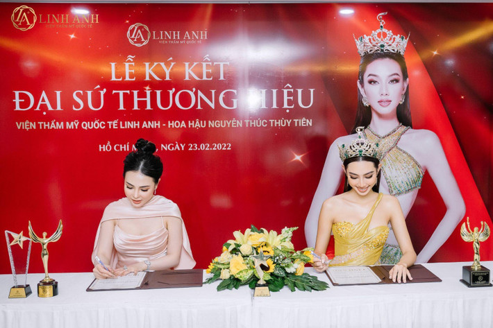 | Năm 2022, Hoa hậu Nguyễn Thúc Thùy Tiên làm đại sứ thương hiệu cho Thẩm mỹ quốc tế Linh Anh. Ảnh chụp màn hình |