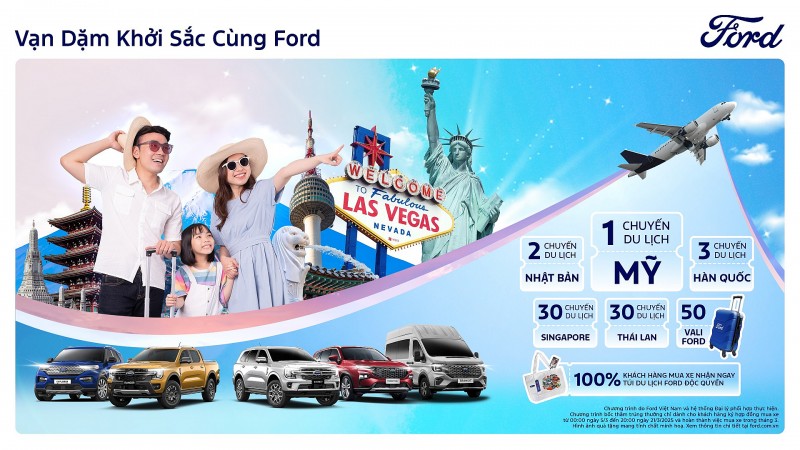 Các khách hàng đặt mua xe Ford bất kì tại các đại lý ủy quyền của Ford trên toàn quốc sẽ được cấp 01 mã quay thưởng để tham gia rút thăm trúng thưởng trực tuyến với cơ hội sở hữu chuyến du lịch dành cho 2 người đến một trong những quốc gia nổi tiếng như Mỹ, Nhật Bản, Hàn Quốc, Singapore, Thái Lan hoặc vali du lịch Ford cao cấp. Tổng giá trị giải thưởng của chương trình “Vạn dặm khởi sắc cùng Ford” lên đến hàng tỷ đồng.
