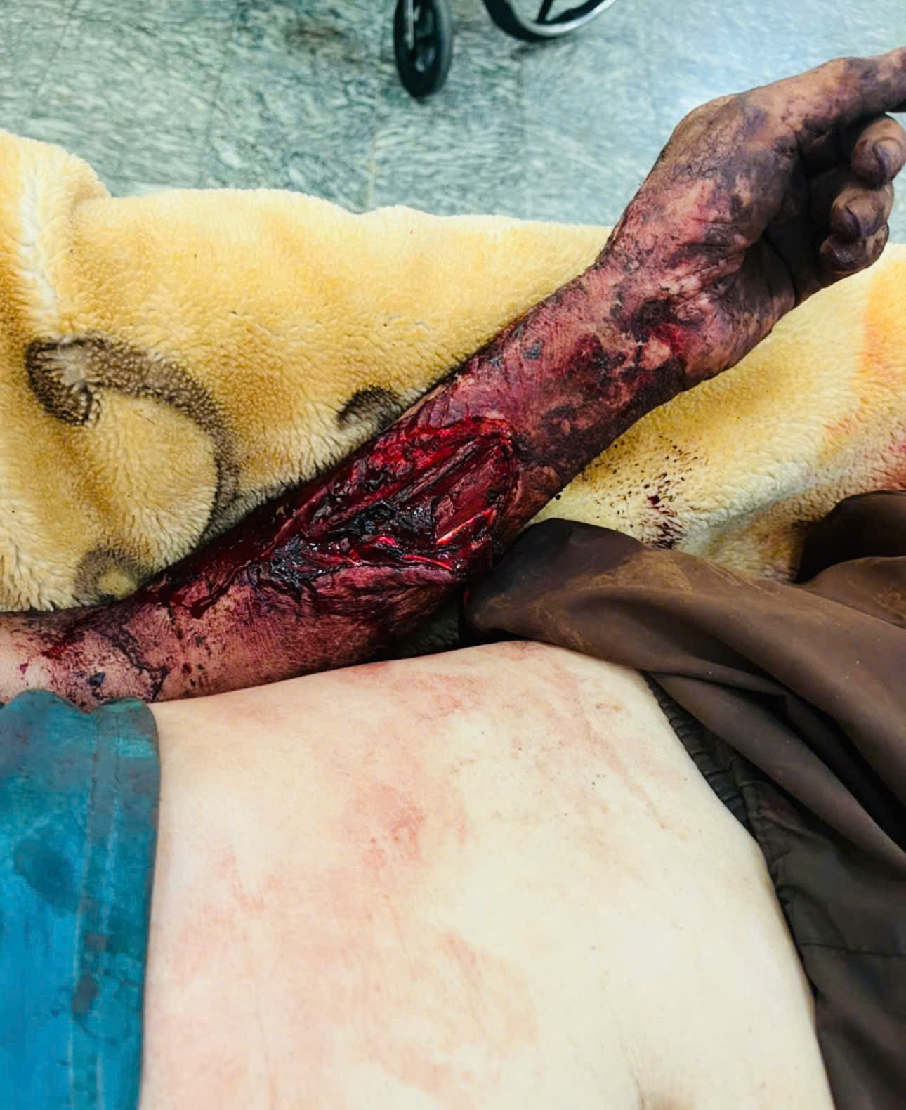 Theo lời kể từ gia đình, trong lúc vợ đi làm, ông Đ.V. ở nhà trông nom con trai thì bất ngờ bị tấn công. Ông được đưa đến Bệnh viện Đại học Y Dược – Hoàng Anh Gia Lai trong tình trạng nguy kịch, với nhiều vết thương phức tạp ở vùng gối phải, cẳng chân trái và cẳng tay trái, mất nhiều máu, nguy hiểm đến tính mạng.
