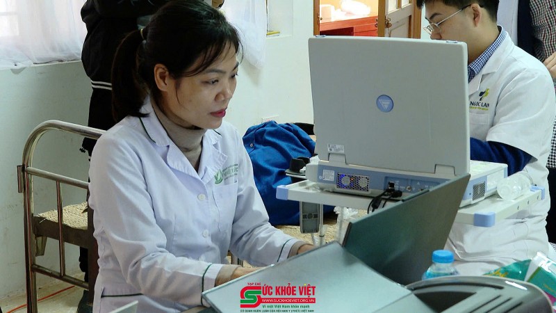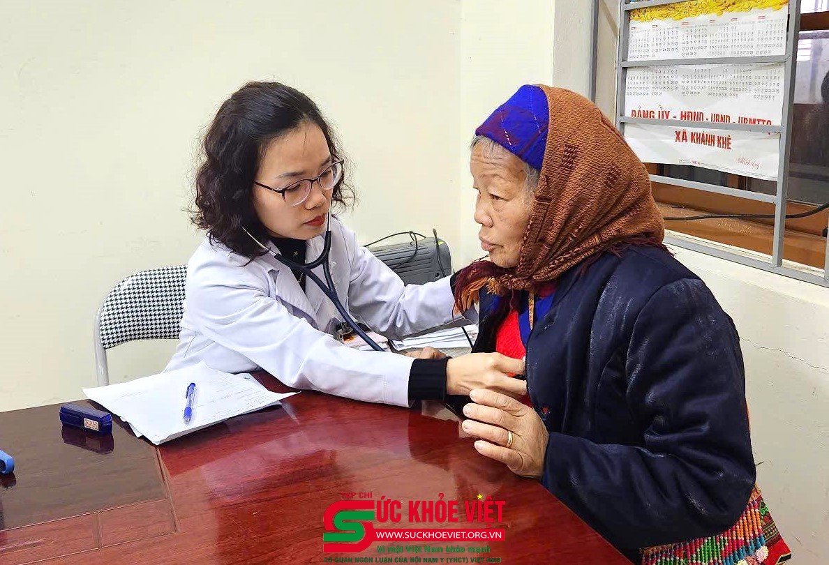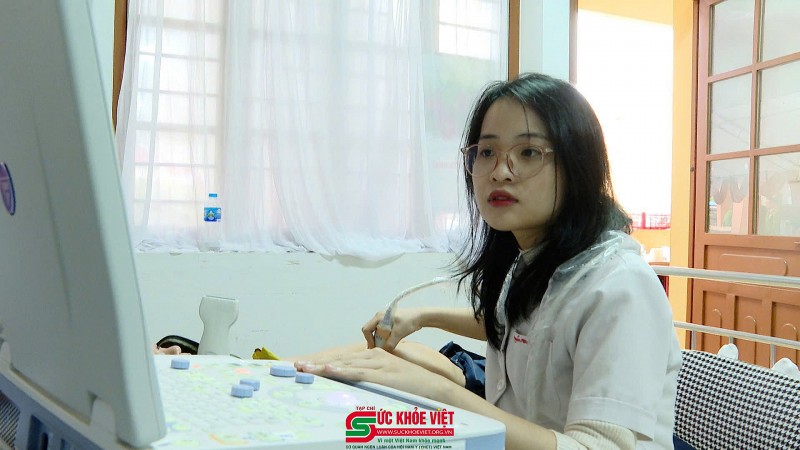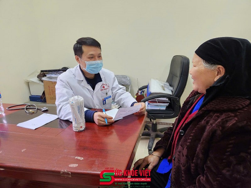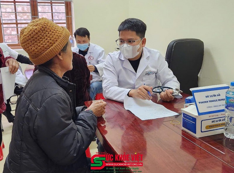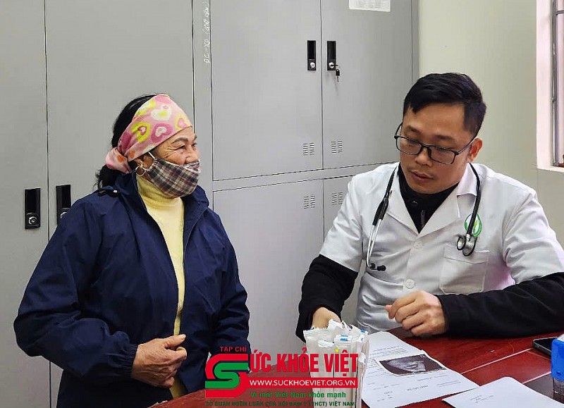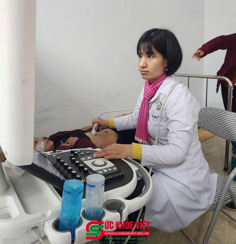 | ThS. Bs. Nguyễn Thị Lan Anh (Trung tâm Tim mạch, Bệnh viện Hữu Nghị Việt Đức) đang thăm khám cho bà con. |