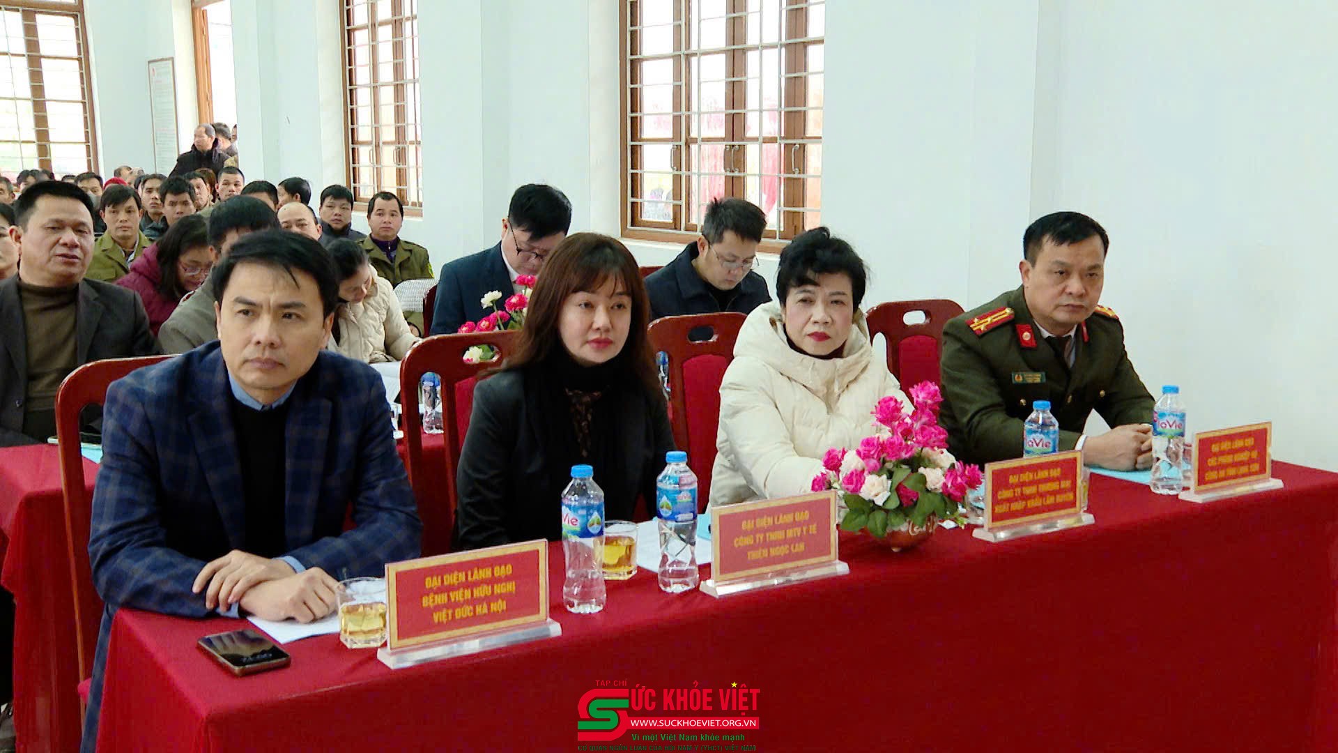 | Lãnh đạo Công an tỉnh, Bệnh viện Hữu nghị Việt Đức, Công ty TNHH MTV Y tế Thiên Ngọc Lan và các tổ chức, nhà hảo tâm tại hội nghị. |