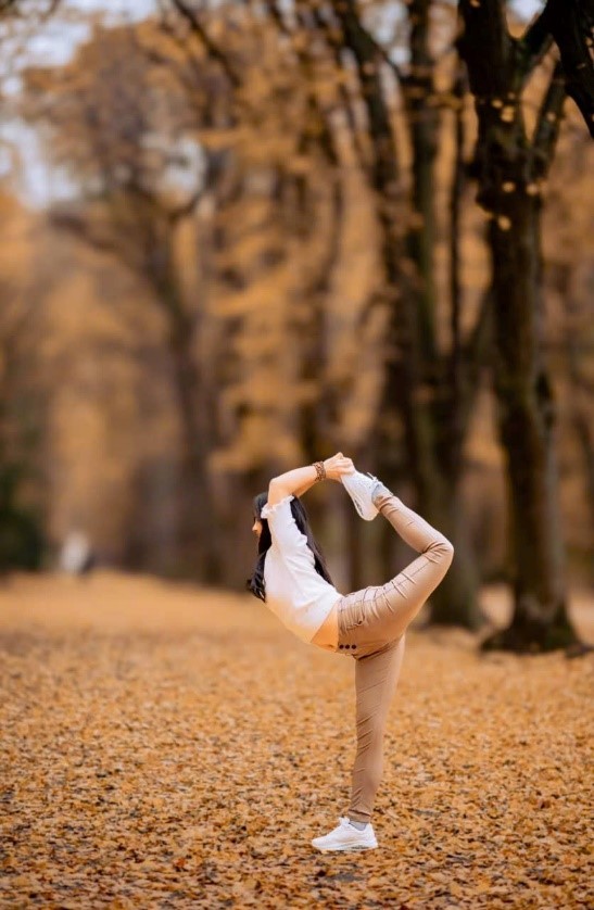 | Chị Vũ Thị Hồng theo đuổi bộ môn Yoga đã được 13 năm. Ảnh: NVCC |