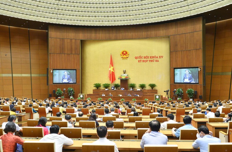 Phiên họp Quốc hội (sáng ngày 13/6) thảo luận ở hội trường về dự án Luật Khám bệnh, chữa bệnh (sửa đổi). |
