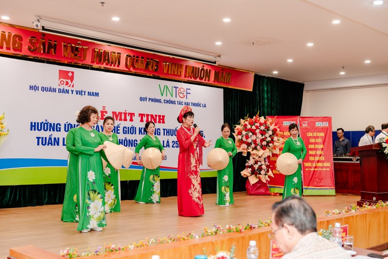 Một trong những điểm nhấn của buổi lễ là chương trình văn nghệ đặc sắc, với các ca khúc, tiết mục múa do hội viên Hội Quân Dân Y Việt Nam biểu diễn. Những giai điệu ca ngợi quê hương, đất nước, tôn vinh giá trị của cuộc sống và sức khỏe cộng đồng đã lan tỏa mạnh mẽ thông điệp “Vì một Việt Nam không khói thuốc”, chạm tới trái tim người tham dự.