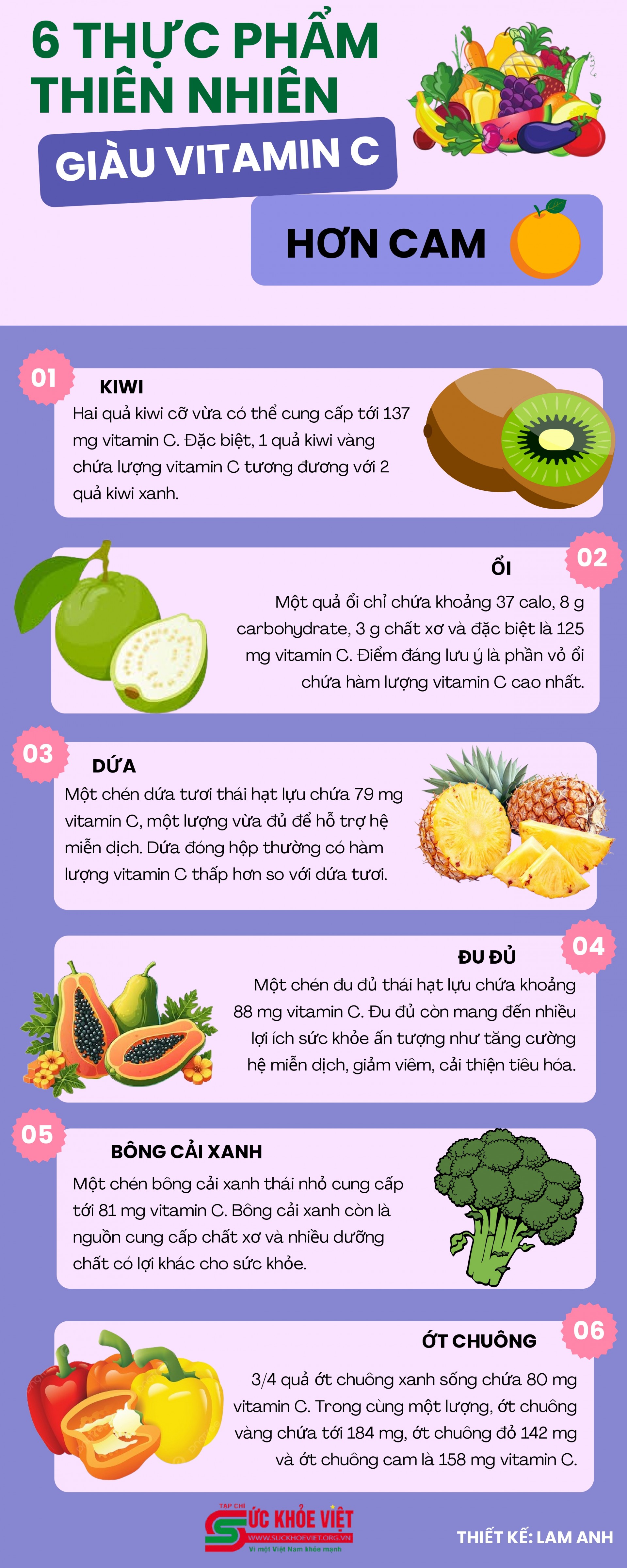 [Infographic] 6 thực phẩm thiên nhiên giàu vitamin C hơn cam