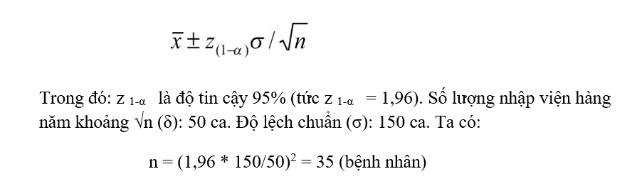 - Cỡ mẫu: Theo công thức tính ước lượng mẫu mô tả tối thiểu