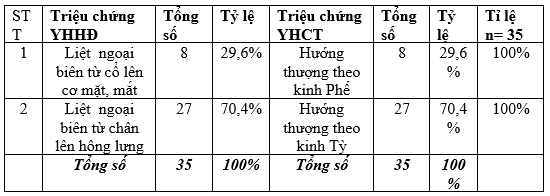 + Bước 2: Lập bảng tổng kết theo mục tiêu: triệu chứng vàng của bệnh hội chứng Guillain-Barré và Nuy chứng hướng thượng.