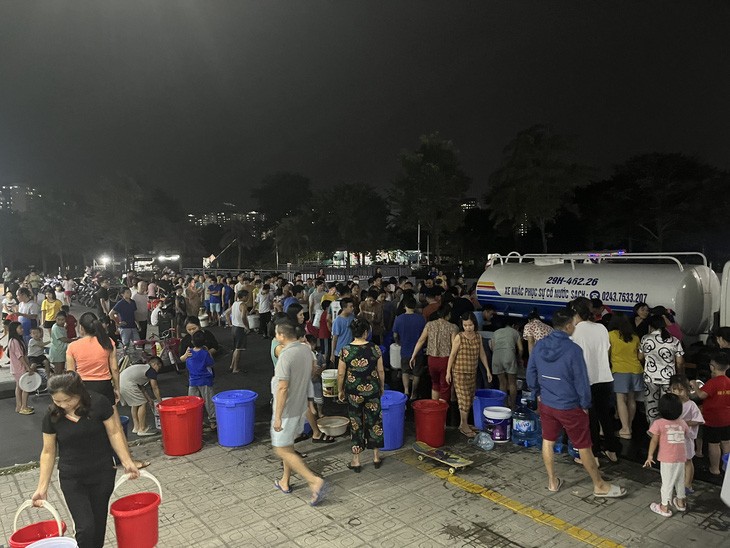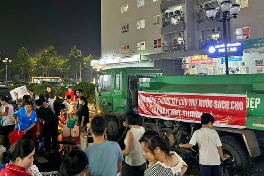 Cho đến tối 22/10, hàng trăm cư dân tại khu đô thị Thanh Hà vẫn phải mang theo thùng, xô, chậu… xếp hàng tại sảnh tòa nhà, đợi xe bồn chuyên dụng mang nước sạch đến cho tới tận khuya. Hơn lúc nào hết, hàng vạn người dân sống tại đây vẫn mong chờ ngày mà nguồn nước sạch đáp ứng đầy đủ cả chất và lượng...