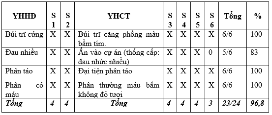 + Bước 2: Ghi nhận triệu chứng từng nhóm bệnh theo YHHĐ và triệu chứng vàng của bệnh cảnh Hậu môn trĩ theo YHCT.