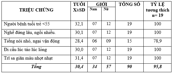 Bảng 1: Bảng tần suất xuất hiện các triệu chứng theo lý thuyết