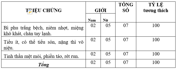 6.1.6. Tần suất triệu chứng trên lý thuyết Bỏng bệnh cảnh Khí huyết cùng kiệt