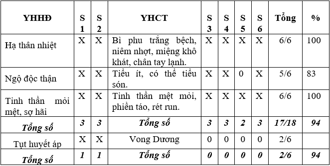 6.2.2. Khảo sát tính tương thích lý thuyết và mô tả thể bệnh trong hồ sơ nghiên cứu bệnh cảnh Âm hư Dương thoát