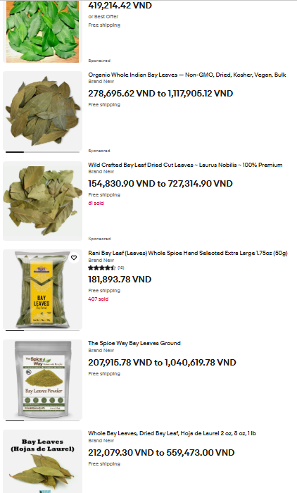 | Lá nguyệt quế được bán giá cao trên Ebay. |