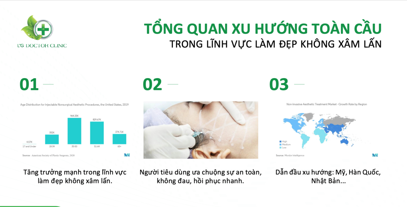 Trong những năm gần đây, ngành công nghiệp làm đẹp đang chứng kiến sự chuyển mình mạnh mẽ, khi xu hướng làm đẹp không xâm lấn ngày càng được ưa chuộng trên toàn cầu. Theo BS. Ngô Thị Thu Yến – Học viện LIGI, đây là hệ quả tất yếu của nhu cầu làm đẹp an toàn, nhanh chóng và ít rủi ro, đặc biệt trong thời đại mà sức khỏe và vẻ đẹp tự nhiên được đặt lên hàng đầu.
