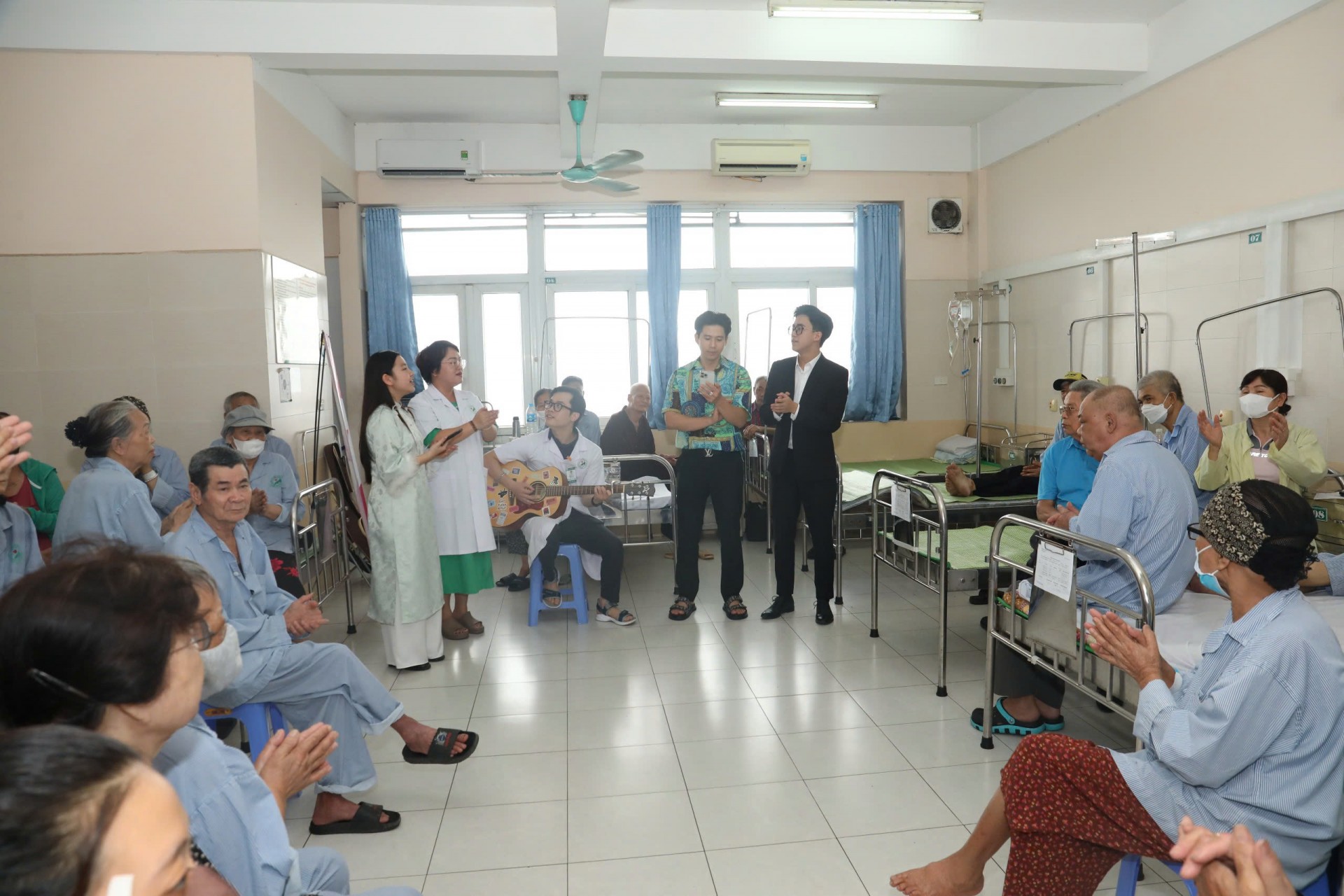 Điểm nhấn xúc động của chương trình chính là phần "Quà tặng đặc biệt". Không sân khấu lộng lẫy, không âm thanh khuếch đại, các nghệ sĩ đã trực tiếp đến từng phòng bệnh, cất lên những giai điệu mộc mạc, chân thành. Những lời ca tiếng hát như những lời an ủi, động viên sâu sắc dành cho những bệnh nhân có hoàn cảnh khó khăn, không thể di chuyển đến hội trường để tham dự chương trình. Dù không có ánh đèn rực rỡ, nhưng trong ánh mắt của người bệnh vẫn ánh lên những tia hy vọng và niềm vui khôn tả.