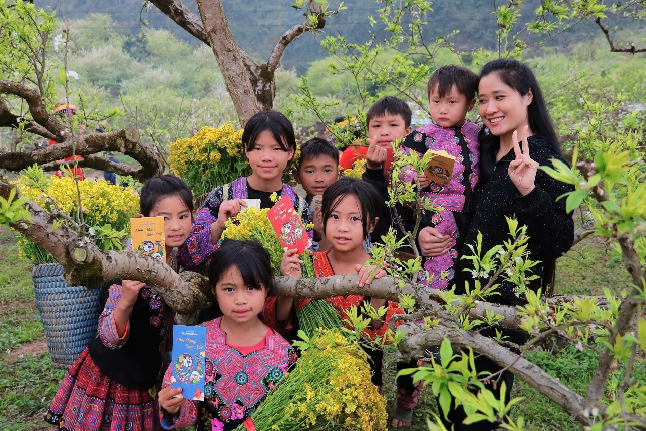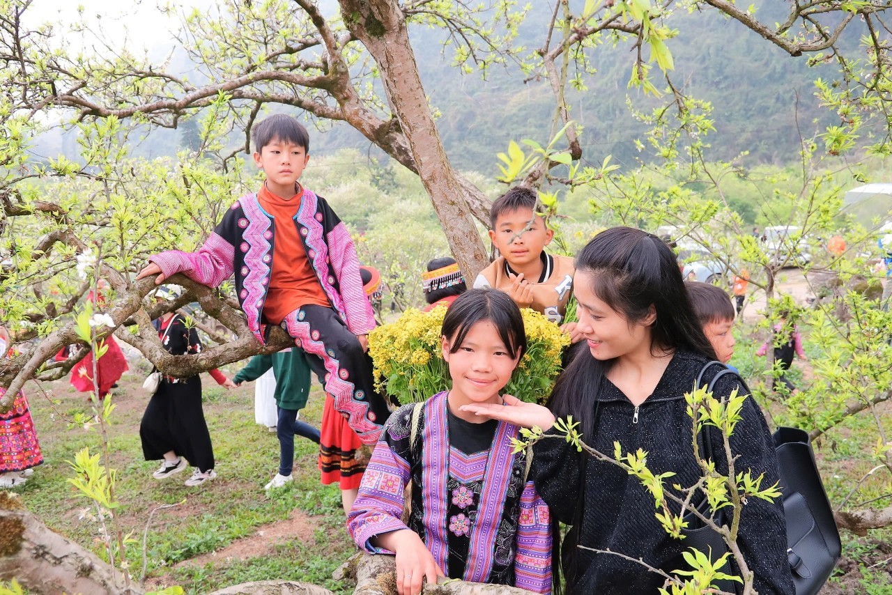 | Du khách chụp cùng các em nhỏ mùa hoa mận tháng 2.2025/Nguồn: Lan Lan/https://suckhoeviet.org.vn/ |