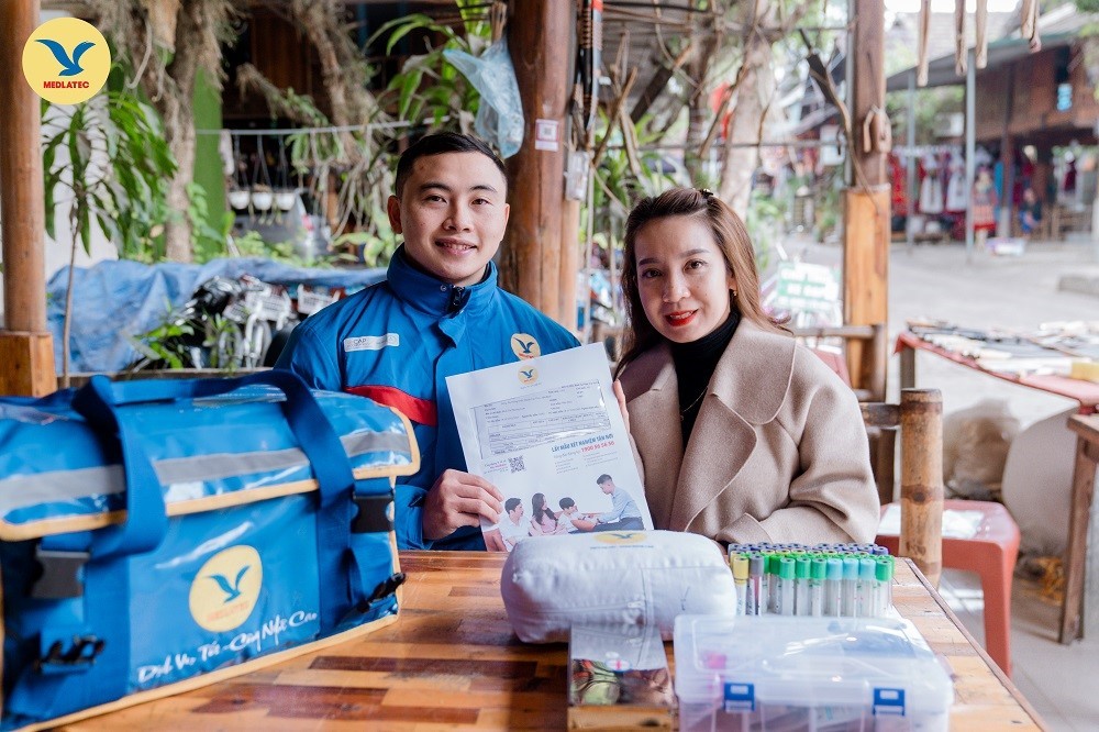 | Thay vì phải tới bệnh viện tuyến tỉnh, hoặc ra Hà Nội cách nhà chừng 150km, chị Hà Thị Mai Phương lựa chọn dịch vụ lấy mẫu tận nơi để được phục vụ tại nhà |