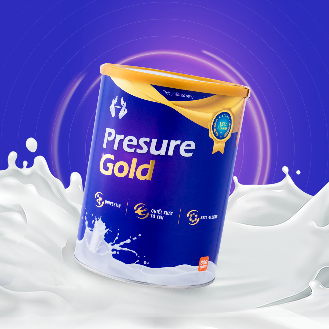 Sữa non Presure Gold hương vani có công thức dinh dưỡng đột phá, chứa bộ 3 dưỡng chất Univestin, hoạt chất Beta – glucan và chiết xuất Tổ yến giúp xương khớp chắc khỏe, ngăn ngừa loãng xương và tăng cường hệ miễn dịch.
