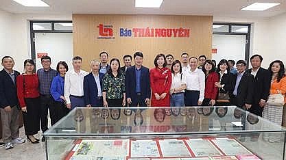 | Lãnh đạo Ban Tuyên giáo Tỉnh ủy, Sở Văn hóa – thể thao và Du lịch, Hội Nhà báo tỉnh, Đài Truyền hình, Báo Thái nguyên và các học viên chụp ảnh lưu niệm |